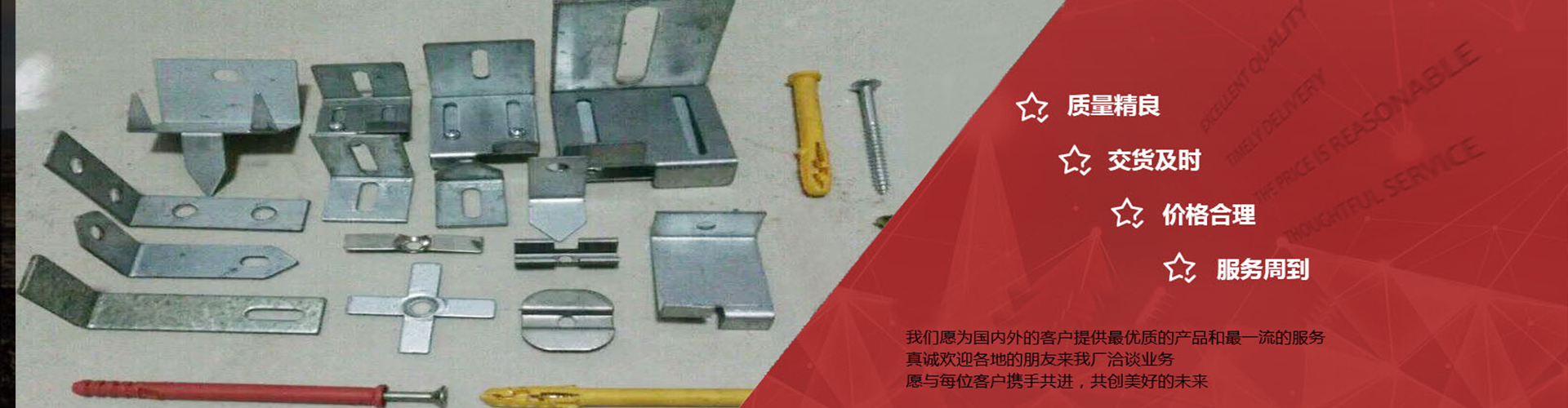 我們 坐落于中國河北省衡水市,歡迎惠顧!我們專業生產批發:保溫釘錨固件、幕墻配件、一體板錨固件、沖壓件等產品。可根據用戶要求訂做各種異形件等。產品銷往全國各地并遠銷國際市場,深受眾多客戶的認可和好評。我們將以完善的服務體系,為客戶提供更加優質的產品。 以科技為依托,以質量為核心,以研發創新為先導,本著以人為本,...
